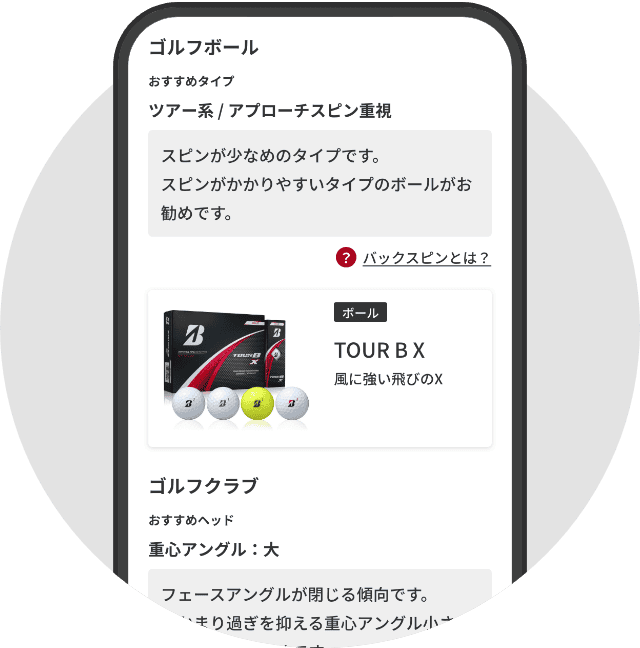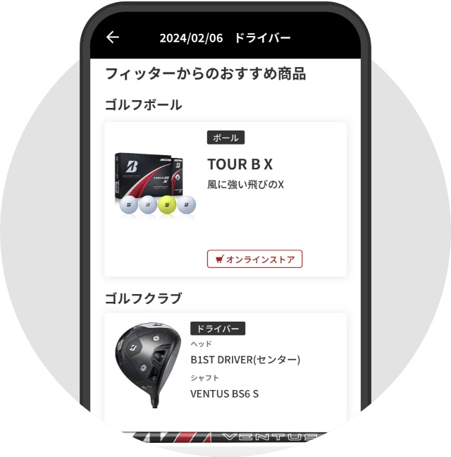 ②全国で開催するブリヂストンのフィッティングサービス「ゴルファーズドック」で計測されたフィッティング結果(おすすめのゴルフボール、クラブ、スイングデータなど)を受け取る事ができます。